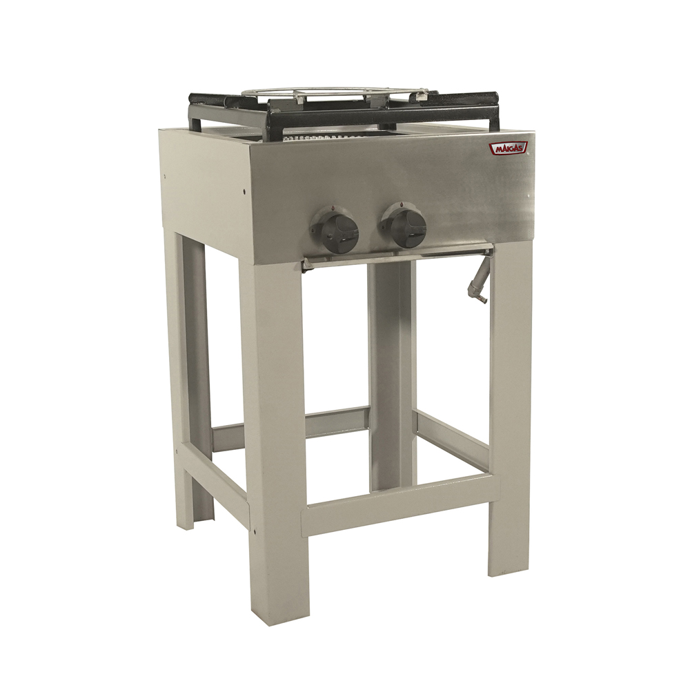 Quemadores industriales de aluminio de 180 mm. y 310 mm. de diámetro, comandados por llaves de 3 posiciones con dispositivo de seguridad.